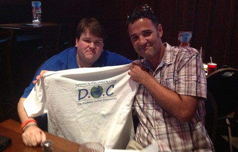 There was something of a speech that went along with that gift, but Simon may have been the only one who heard it. It was quite simply that we, the DOC, are indeed a global community. As the slogan on the shirt says, we are “Separated by Miles, United by a Cause”. In my mind, Simon embodies that. And I am in awe of the commitment and effort he has put into making that 10,000 mile journey from Australia to the U.S., not once but twice. Just for the opportunity to meet with other people with diabetes. People with whom he had become friends via this wild and crazy thing we call the internet and social media. It’s pretty incredible, really. I’m proud to have been able to give him that shirt and I feel blessed to have had the opportunity to do so in person and among other DOC friends.