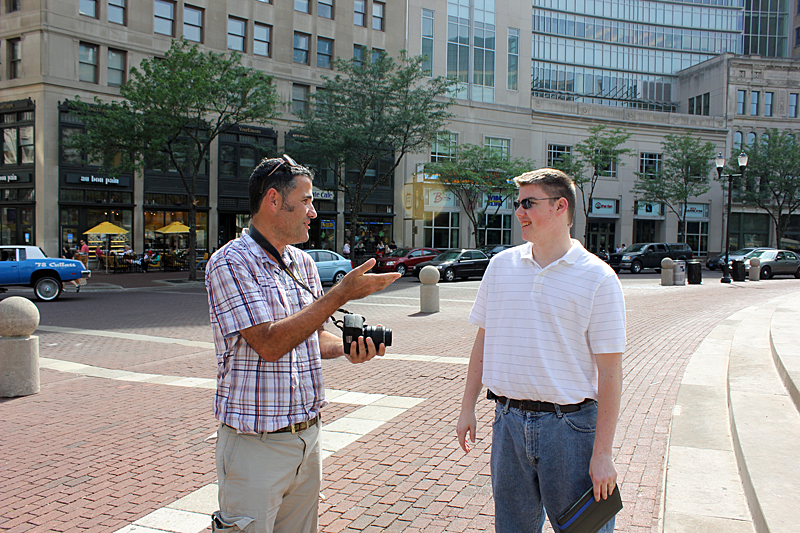 I drove to Indy from Fort Wayne that afternoon and, after checking in at the hotel, headed downtown to Monument Circle to catch up with Simon, Mike and Suzi. It was so awesome getting to meet Simon in person and hang out with him while he took in the sights of downtown Indianapolis. Simon took several photos of the Soldiers & Sailors Monument and I’d snap a photo of him from time to time. At one point, he noticed me doing so and busted out laughing. There’s nothing like capturing pure, spontaneous emotion on camera. That photo is in the gallery below.