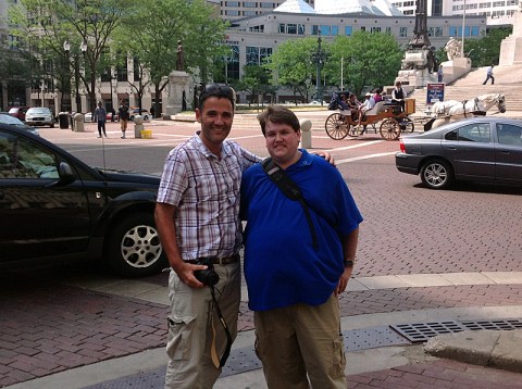 Simon arrived in Indy early Saturday morning, after a wild and crazy adventure that can only be described as a remake of the movie Planes, Trains and Automobiles. And was met by Mike Hoskins, with whom he stayed while in town.
