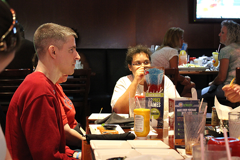 Our touristy shenanigans drew to a close as the time for our meetup with the rest of the group quickly approached. We found our way back to our cars and set out for more D-meetup fun at Dave & Busters on the north side of Indy. There we met up with Marie & Bea, who drove to Indy from the Chicago area, and Jeff, Libby Hogan, and Michael & Melissa Schwab who live in the Indy area.