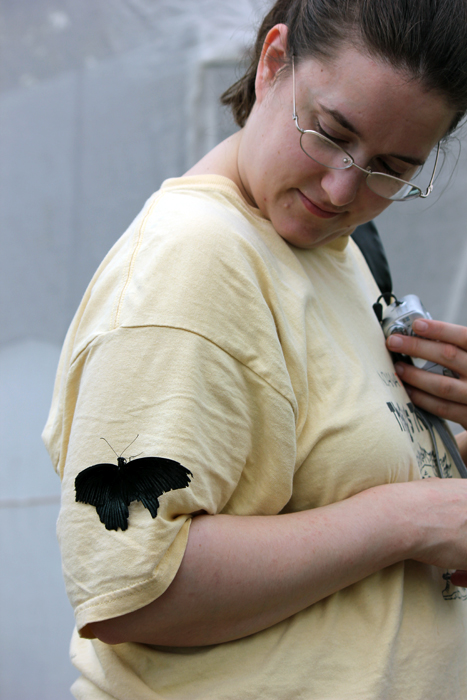 I took April and her dad to the botanical conservatory on Sunday to see the Butterflies of Malaysia exhibition before it closed. Some of the little creatures were quite social.