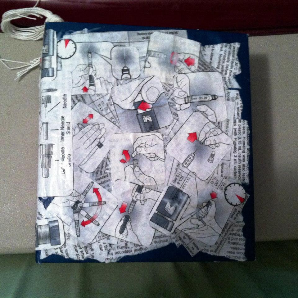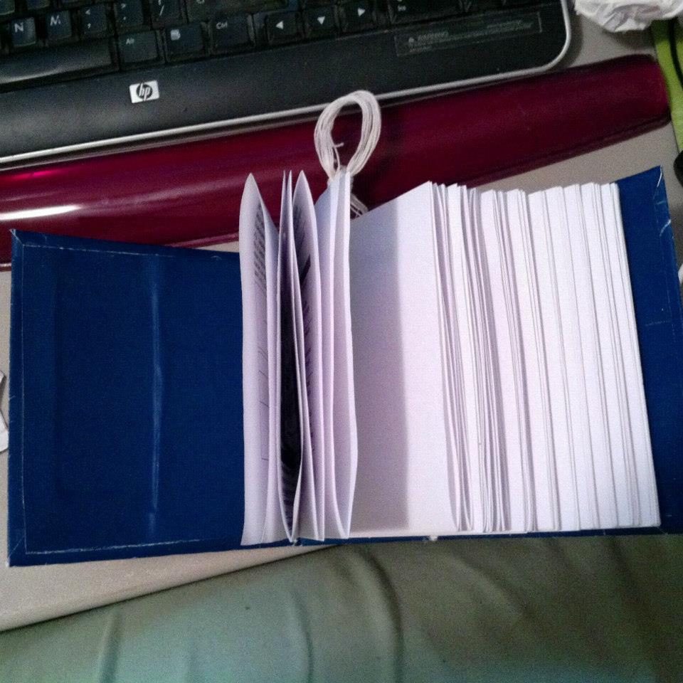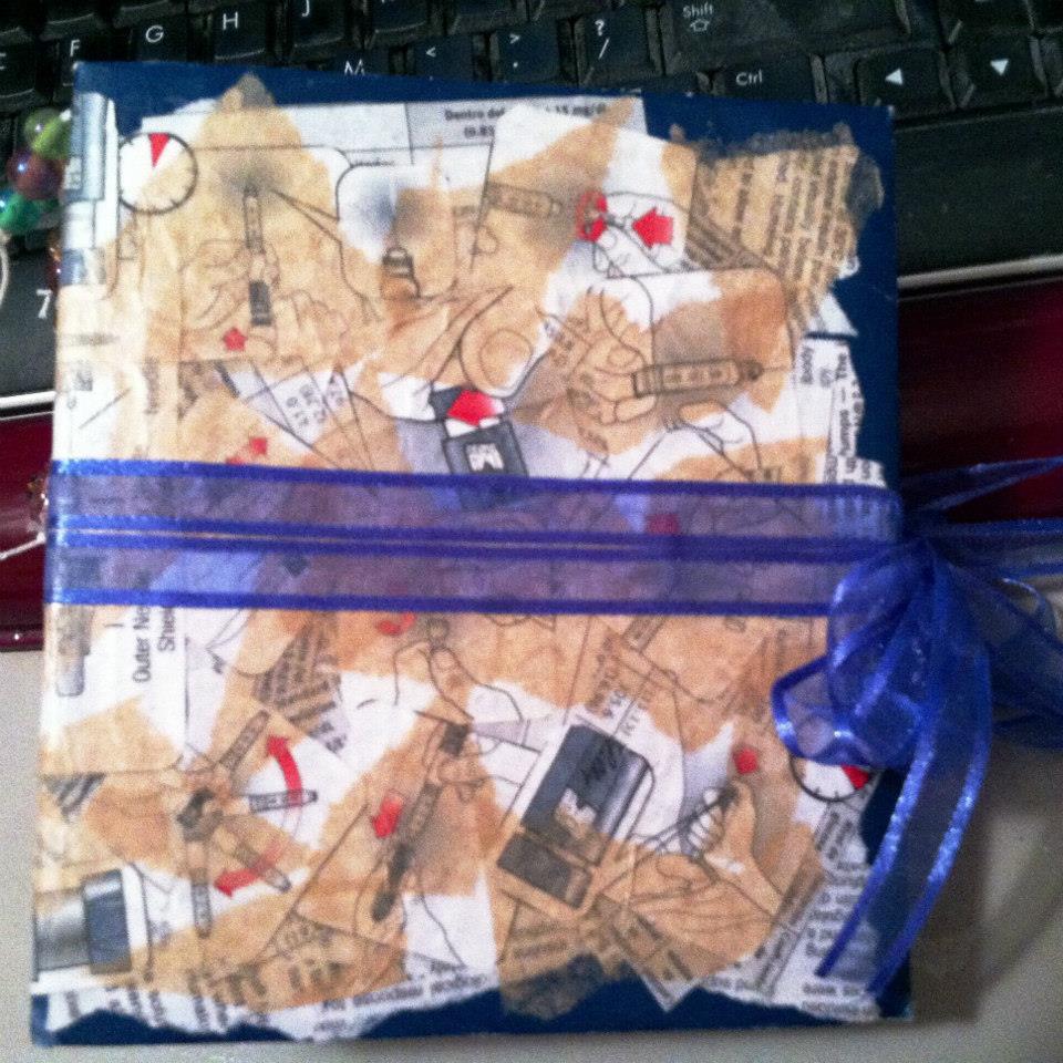 So what have I been doing to keep from running out screaming into traffic? Making books. Yeah, you read that right. I said making. Not writing. Not reading. Making them. From anything & everything. Recycled materials or things I had around the house. So far I’ve made twelve of them. Lucky number 13 is floating around in my head right now. In fact, she’s trying desperately to distract me from writing this post. I’m resisting since I’ve made Mike wait long enough & I’d like for him to continue speaking to me.