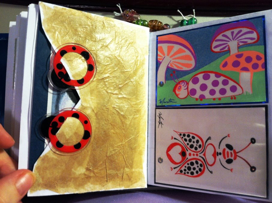 When I’d finished the first book, I discovered that I was still curious about other ways I could make more. I began hunting up old stationery & keeping things like paper bags with the intention of making more books. I brought home a stack of file folders that were headed for the recycle bin at work. Fast forward & you have me sitting here with visions of Book Thirteen floating around in my head amidst all the words I’m trying to set down on “paper” for Mike. And even though it’s just about bedtime, I am about to succumb to Book Thirteen’s siren song. So if you’ll excuse me, I’m going to work in a bit of book therapy before I go to bed.