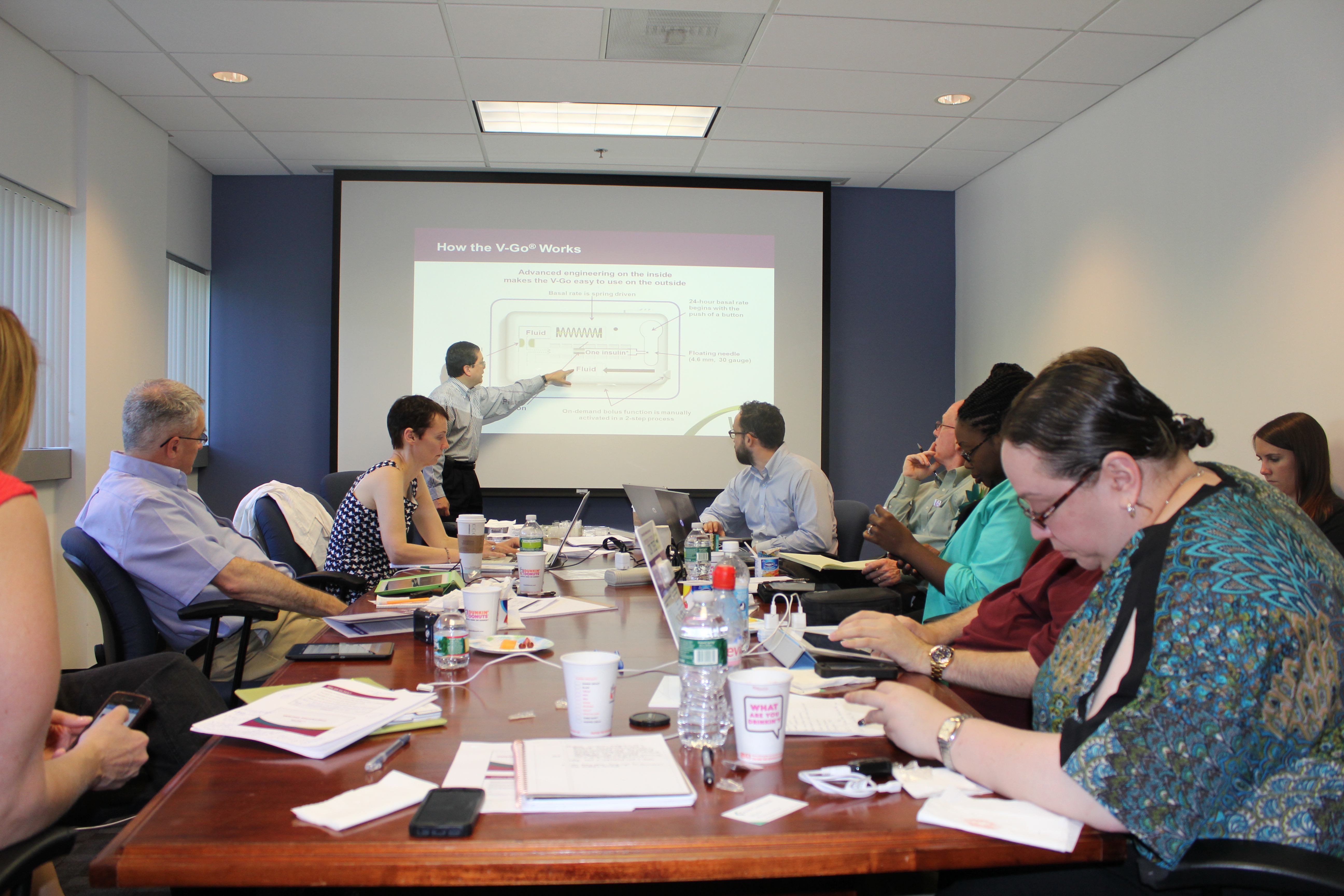 Breffni Fox, Brand Director, introduced the group to the V-Go Insulin Delivery Device and gave an overview of what it was.