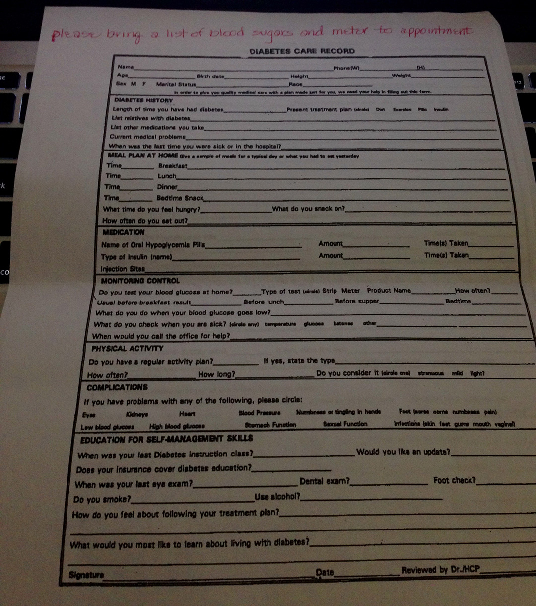 Tomorrow morning I have my first appointment with an endocrinologist. For the last six and a half years, the management of my type 2 diabetes has been overseen by my primary care doctor. Due to some progression, changes that I want to make in my treatment regimen, and lack of knowledge on the doctor’s part, I’m switching to an endo.