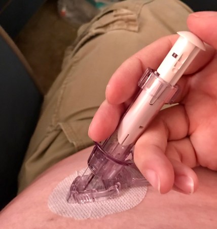 Had to change Dexcom sensors before I left for Louisville this evening. Pushing that plunger down is still the hardest part after months of wearing these things.