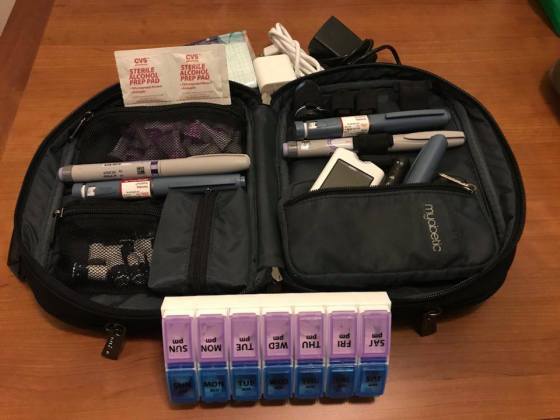There are no breaks from diabetes, even on holidays. Everything I’ll need to manage the beast while in Louisville fits in my Thompson case from Myabetic. Extra Insulin pens, meter, plenty of pen needles, alcohol swabs, chargers, oral meds, etc… all in one bag. Convenient, for sure.